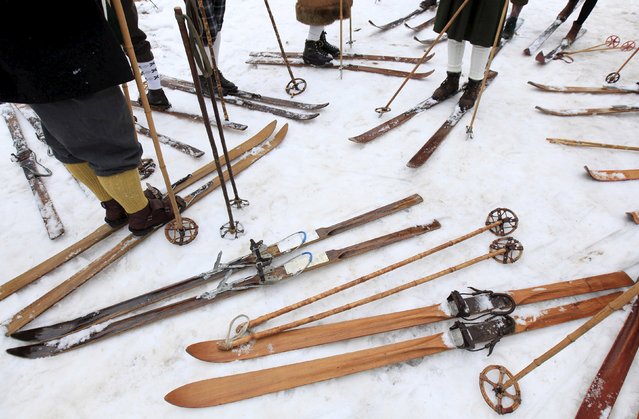 Skis assimétricos furam usados na Finlândia até ao final do séc XIX em que um ski era longo e não arqueado para deslizar e o outro era curto com peles por baixo para empurrar. Nesta altura usava-se apenas um baton longo tipo lança. A primeira imagem de um esquiador com dois bastões é de 1741. Nesta altura o ski era usado como meio de transporte e apenas depois se transformou numa diversão e desporto.